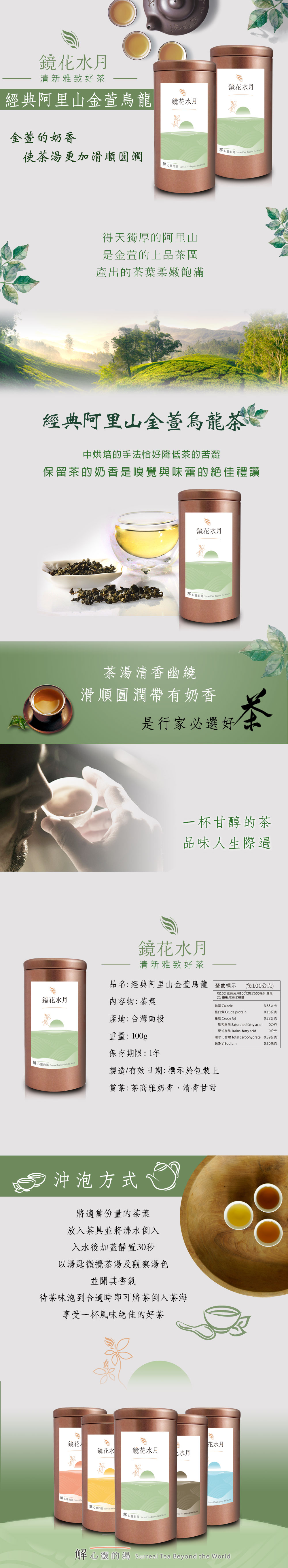 得天獨厚的阿里山是金萱的上品茶區,產出的茶葉柔嫩飽滿,中烘培的手法恰好降低茶的苦澀、保留茶的奶香,使茶湯更加滑順圓潤、清香幽繞,絕對是嗅覺與味蕾的絕佳禮讚。