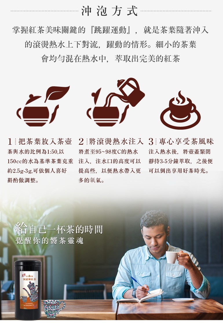 您不曾喝過的新式紅茶,選用台灣烏龍茶種全發酵製成,再以龍眼木文火炭焙而成的阿薩姆紅茶, 入喉可品味到特有麥芽香, 炭焙後的香氣更足,而茶色清透鮮亮 是廣受歡迎的特殊茶韻。