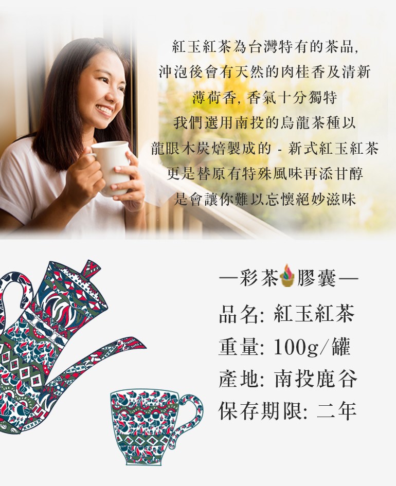 紅玉紅茶為台灣特有的茶品,沖泡後會有天然的肉桂香及清新薄荷香, 香氣十分獨特,我們選用南投的烏龍茶種以龍眼木炭焙製成的 - 新式紅玉紅茶 更是替原有特殊風味再添甘醇,是會讓你難以忘懷絕妙滋味