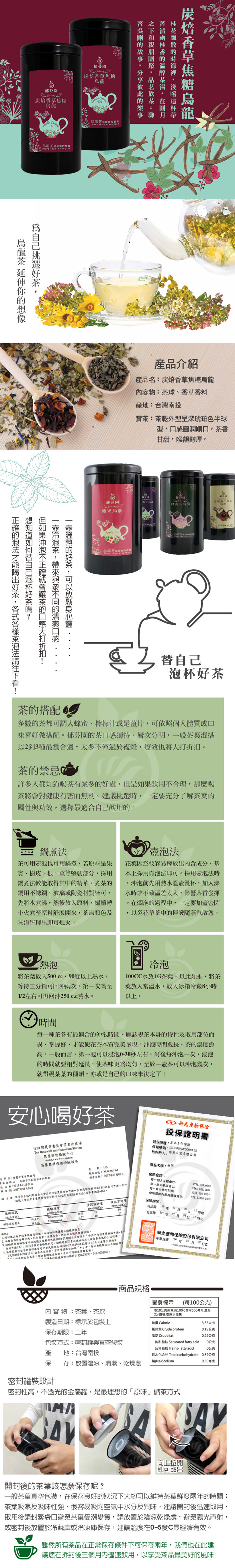 龍眼木碳焙後的烏龍茶湯,佐以誘人的香草甜味,加上甜而不膩的焦糖,豐富而多層次的口感,最適合在工作結束後,放鬆繃緊的身心。