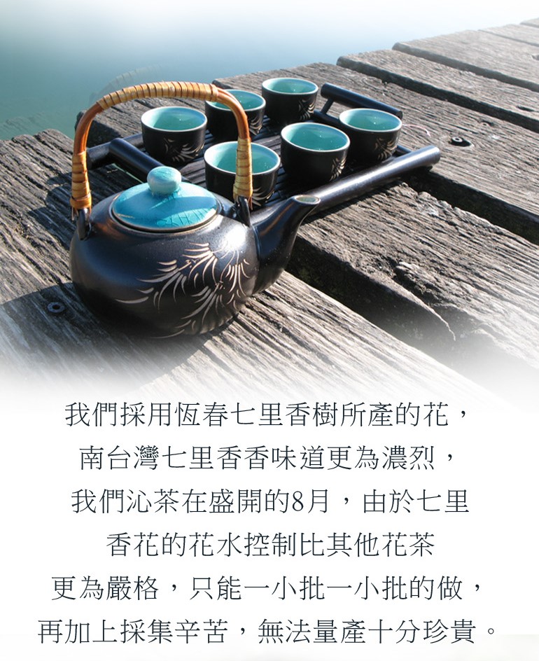 当社のシルクジャスミンの花は、恒春で採れるものを使用しています。台湾南部のシルクジャスミン茶は北部で採れるものより味が濃厚で、お茶の抽出は8月の夏にピークを迎えます。シルクジャスミンの抽出手順のうちエキスの管理が他の花茶よりも難しく、お茶を一つ一つ作りますので、大量生産はできません。