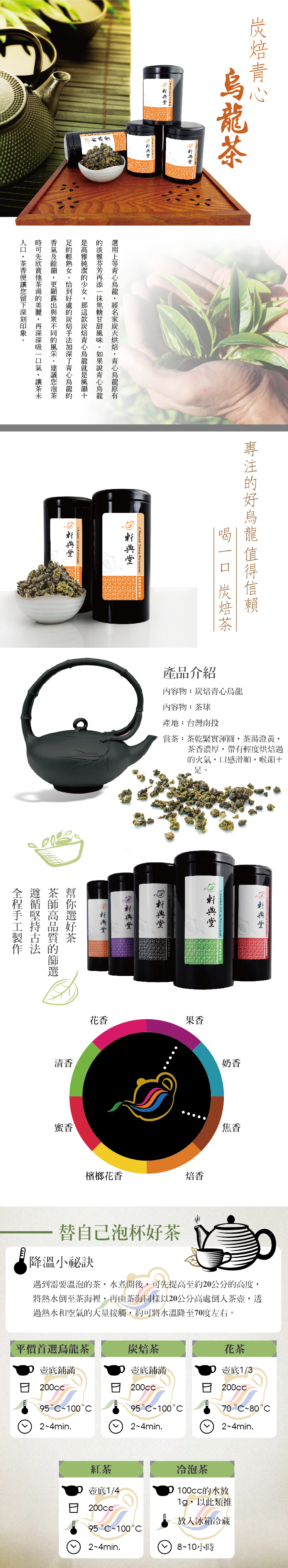 Selected from premium Qingxin oolong tea, roasted by roasting experts, so that an exotic caramel aroma can be added to the original mildly elegant fragrance with special roasting process.